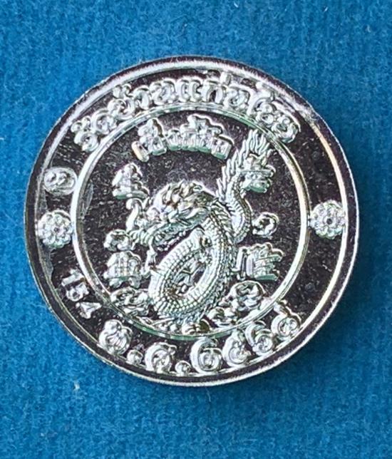 เหรียญโชคดี หลังมังกร ครูบาเกียรติยศ พรหมปัญโญ วัดบ้านแก่นไชย ปี 2568 โชคดีทุกเวลารวยเงินตราทุกนาที เนื้อกะไหล่เงิน หมายเลข 154
