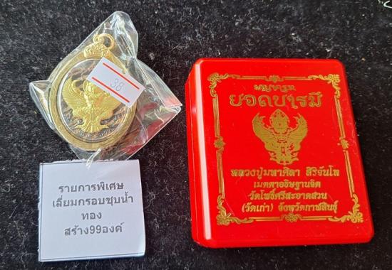 เหรียญพญาครุฑ หลวงปู่ศิลา วัดโพธิ์ศรีสะอาด รุ่นยอดบารมี ลังนำฤกษ์ เนื้อมหาชนวน ลายเสือ หน้ากากทองทิพย์ เลี่ยมกรอบชุบน้ำทอง No.48 |