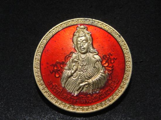 วัดใจเคาะเดียว........100.......เหรียญเจ้าแม่กวนอิม หลังมังกร โชคมงคล กะไหล่ทองลงยาแดง สวย |