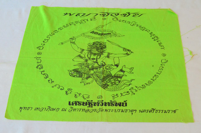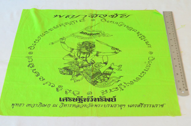 ผ้ายันต์ พญาชิงชัย รุ่น เศรษฐีทวีทรัพย์ ขนาด 15 นิ้ว X 16 นิ้ว ปี2550 พุทธา เทวาภิเาก ณวิหารหลวง วัดพระมหาธาตุวรมหาวิหาร จ.นครศรีธรรมราช สวยครับ
