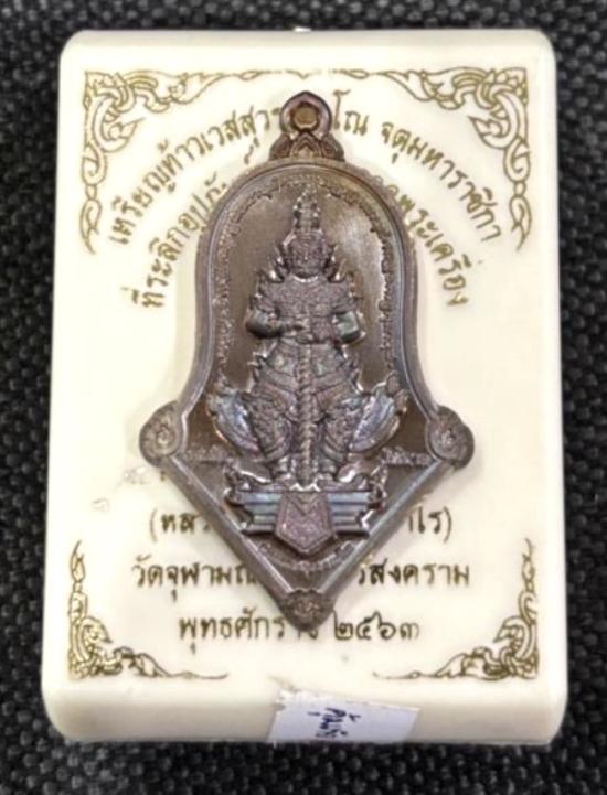 เหรียญท้าวเวสสุวรรณ พิมพ์จำปี หลวงพ่ออิฏฐ์ วัดจุฬามณี รุ่นคุ้มภัยให้ลาภ เนื้อมันปู เลข 4009 พร้อมกล่องเดิมครับ