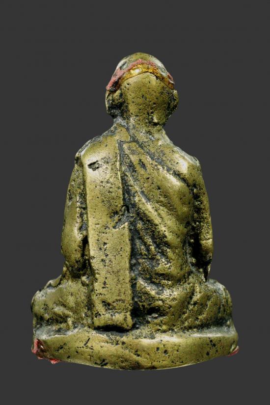 รูปหล่อโบราณ เนื้อทองผสม เกจิเก่าเเท้ไม่ทราบที่ มีอุดกริ่ง สภาพสวยครับ(สีเเดงๆติดขอบองพระ เป็น โฟมเเดงกรอบพระไม่ได้ล้างออกเฉยๆครับ)