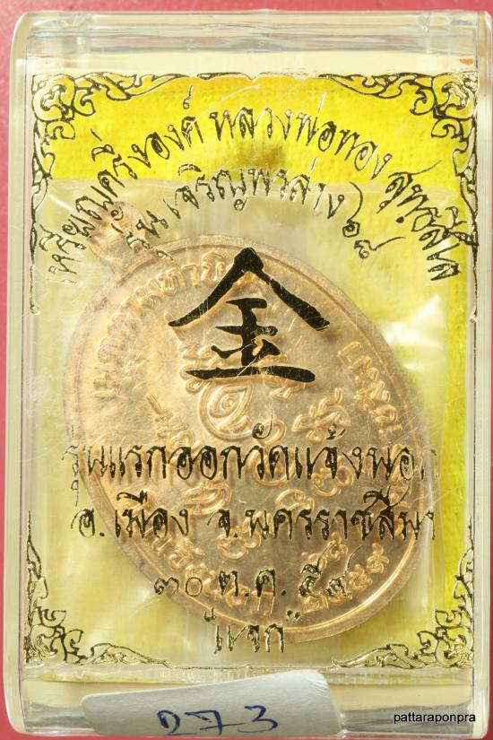 เหรียญหลวงพ่อทอง รุ่นเจริญพรล่าง ปี 2559 เนื้อสัตตะมีจาร หมายเลข 273 |
