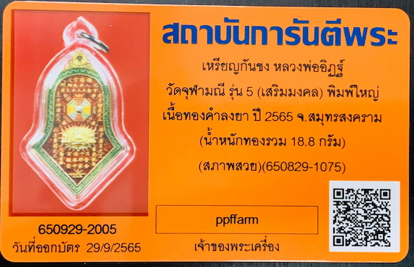 บัตร..สภาพสวย..เหรียญกันชงทรงจำปีรุ่นแรก พิมพ์ใหญ่ เนื้อทองคำลงยา พิธีมหาพุทธาภิเษก-เทวาภิเษก เมื่อวันที่ 4 กุมภาพันธ์ ณ วัดจุฬามณี อ.อัมพวา จ.สมุทรสงคราม ปี 2565