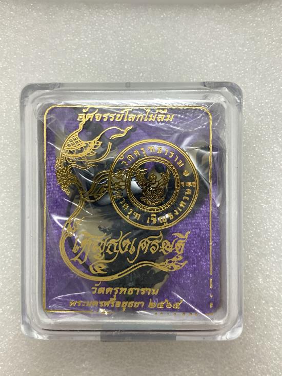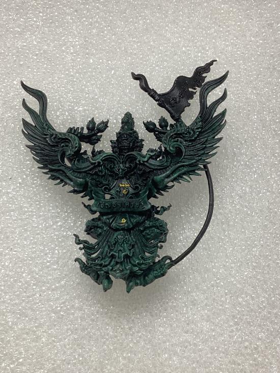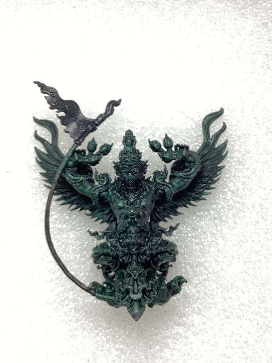 พญาครุฑทรงมหิธานุภาพ เชิญธงเศรษฐี วัดครุฑธาราม จ.พระนครศรีอยุธยา พิมพ์ใหญ่ สูง 4.5 ซ.ม. เนื้อประแจจีน ขัดยาดำ (แยกชุดกรรมการ) กล่องเดิม |