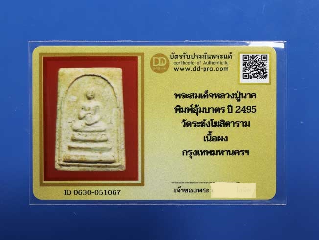 ชื่อพระเครื่อง พระสมเด็จหลวงปู่นาค วัดระฆัง พิมพ์จกบาตร ปี 2495 วัดระฆังฯ สวยเดิม + บัตร