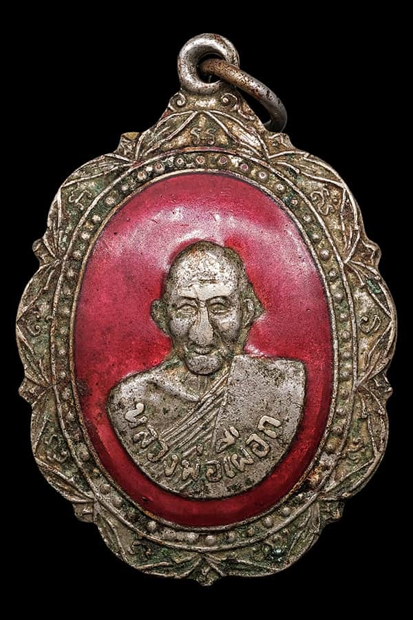 เคาะเดียว เหรียญหลวงปู่เผือก วัดกิ่งแก้ว ๑ พิมพ์แมงกะบี้ ปี 2515 เนื้ออัลปาก้า ลงยาสีแดง