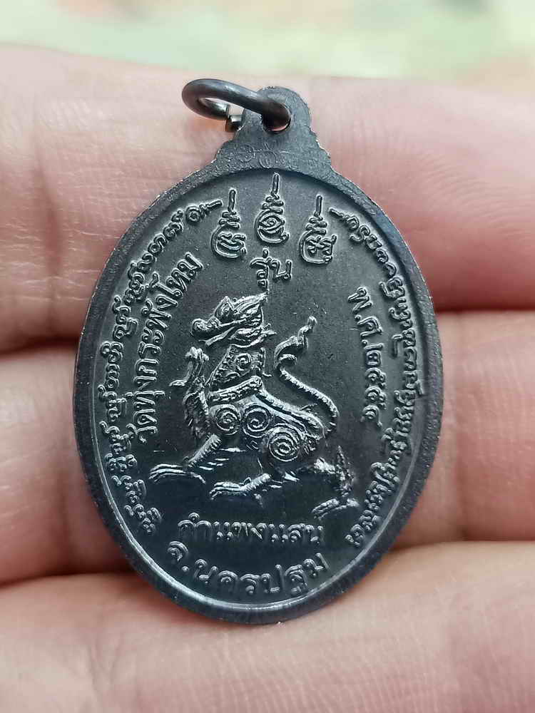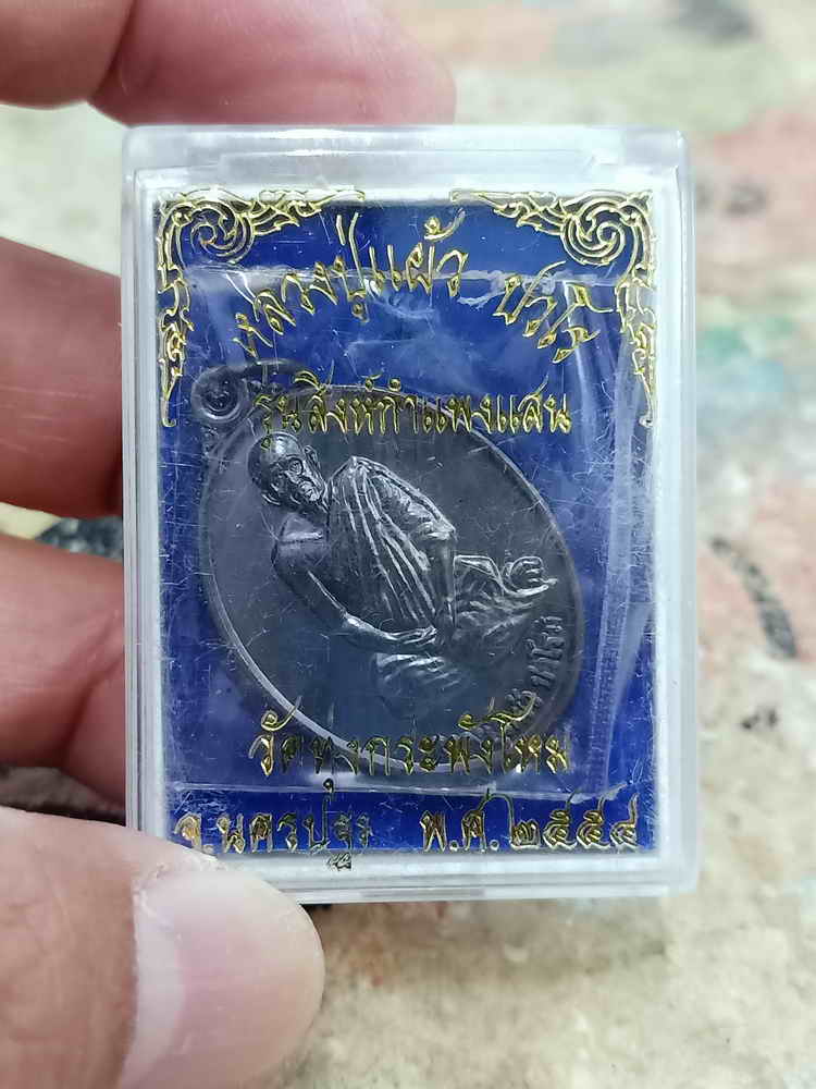 วัดใจ 100 เหรียญรุ่นสิงห์กำแพงแสน หลวงปู่แผ้ว ปวโร วัดรางหมัน ออกวัดทุ่งกระพังโหม จ.นครปฐม 2554 ทองแดงรมดำ กล่องเดิม