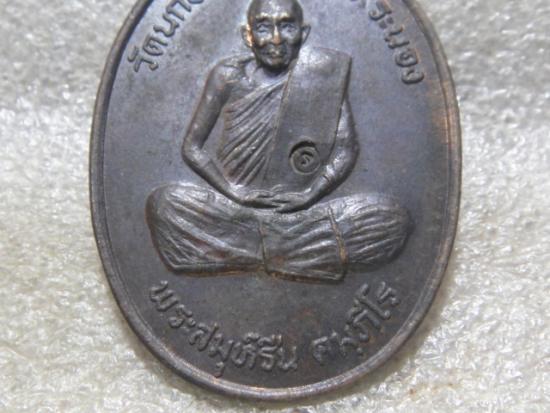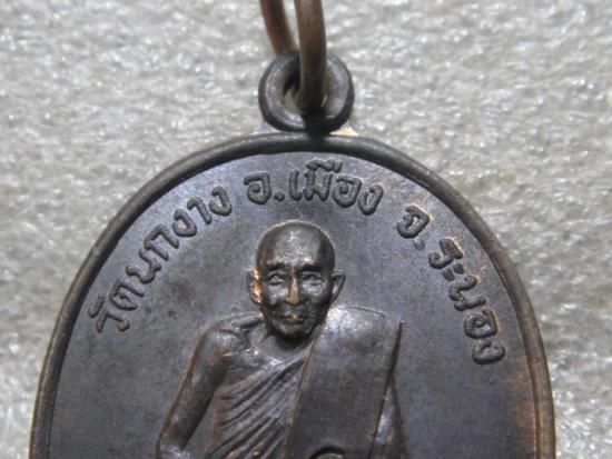 เหรียญหลวงพ่อรืน วัดนกงาง จ.ระนอง รุ่นแรก บล็อควงเดือนนิยม ปี 2519 เนื้อทองแดง ตอกโค๊ต ( มีจารเพียบ ) ผิวสวยๆ