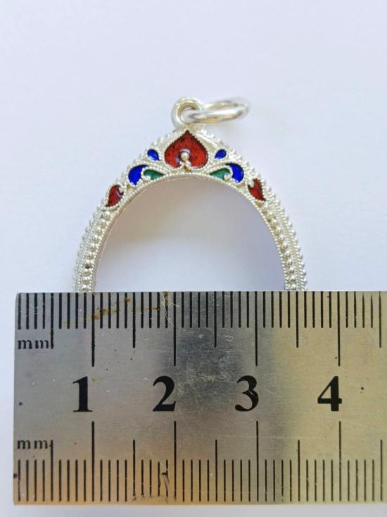 กรอบเงิน ลงยาสุโขทัย ใส่ เหรียญรุ่นแรก หลวงปู่แผ้ว วัดกำแพงแสน ขนาดตามภาพ ซื้อมาเก็บไว้ยังไม่ได้ใช้งานค่ะ |
