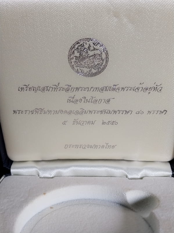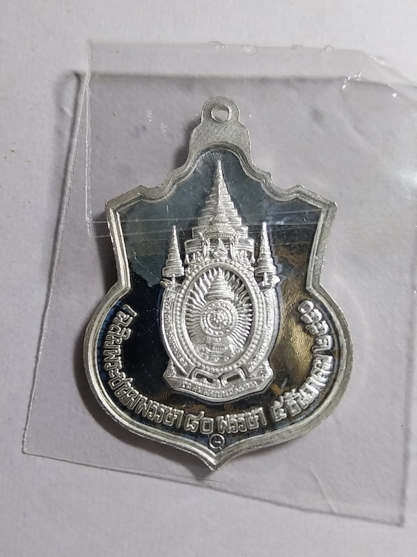 เหรียญเสมาที่ระลึก ในหลวงรัชกาลที่ 9 เนื่องในโอกาสเฉลิมพระชนมพรรษ 80 พรรษา 5 ธ.ค.2550 เนื้อเงินขัดเงา เหรียญพร้อมแหนบ กล่องเดิม ไม่มีตลับอะคริลิคใส่เหรียญ กระทรวงมหาดไทยจัดสร้าง |