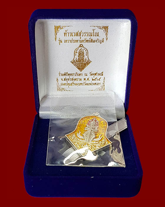 เหรียญท้าวเวสสุวรรณ รุ่น เทวาประทานทรัพย์สินเจริญดี หลวงพ่ออิฏฐ์ วัดจุฬามณี อุปถัมถ์ พุทธาภิเษก วัดจุฬามณี เนื้อเงินลงยาเหลือง หมายเลขสวยๆ ๔๔ พร้อมกล่องทั้งชุดครับ