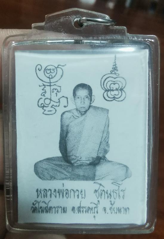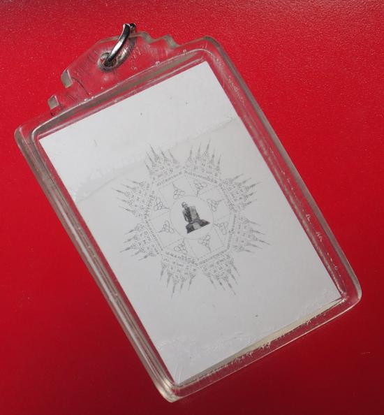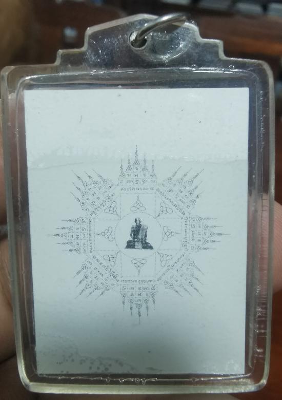 รูปถ่ายหลวงพ่อกวยเต็มองค์ ปี 2556 ด้านหลังยันต์ 8 ทิศ |