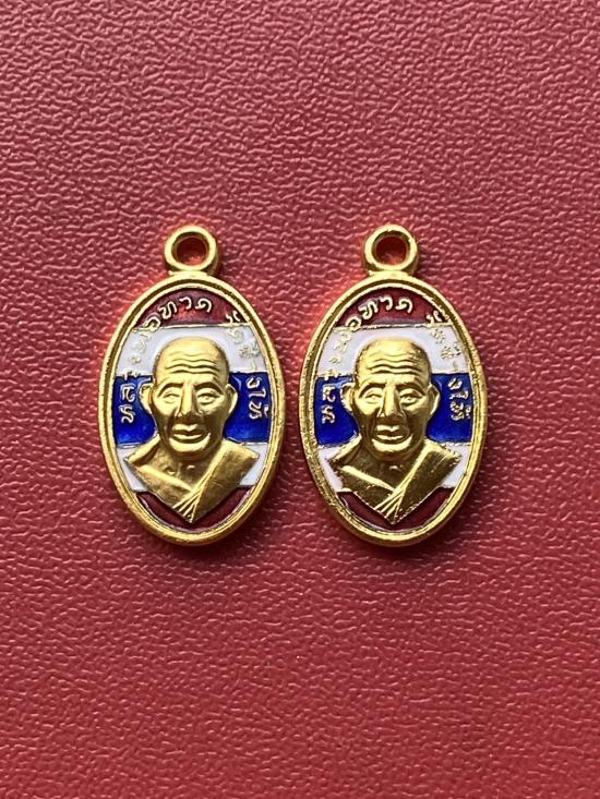 เคาะเดียวแดง เม็ดแตง 2องค์หลวงปู่ทวด รุ่น102ปีอาจารย์ทิม เนื้อชุบทองลงยาธงชาติ |
