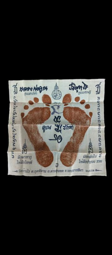 เคาะเดียว.ผ้ายันต์เท้า หลวงพ่อคูณปริสุทโธวัดบ้านไร่ รุ่น เสาร์ห้า คูณเศรษฐี ปี2543 ปั๊มตราวัด พิเศษมีจารปากกาเมจิก |