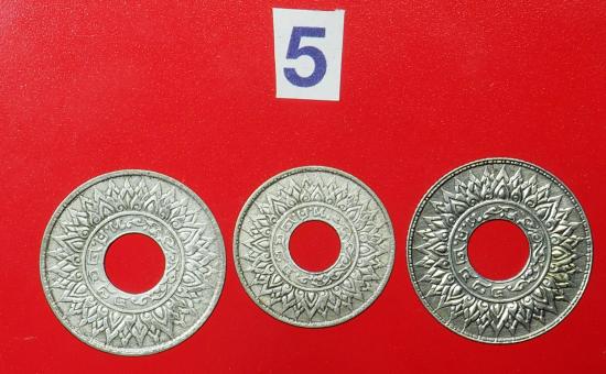 ชื่อพระเครื่อง ( 5 ) เหรียญเงินสตางค์รูลายกนกแข้งสิงห์ สมัยร. 8 หน้าเหรียญ10สตางค์ 2เหรียญ 5 สตางค์ 1 เหรียญ