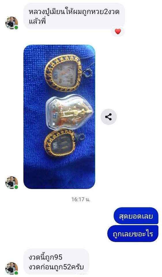 1 ใน 99 นะหน้าทอง โชคพันล้าน หลวงพ่อเมียน วัดจะเนียง บุรีรัมย์ หลวงปู่มหาศิลา (หลวงปู่ศิลา)อธิษฐานจิต หน้าทองฝังอิ้นคู่นั่ง ฝังตะกรุดเงิน 2 ดอก เลขNO.60 สวยมาก กล่องเดิมครับ |
