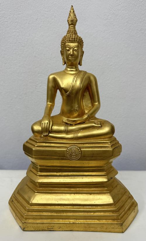หลวงพ่อพระเสริม รุ่นฉลองศิริราชสมบัติครบ 50 ปี สร้างปี 39 เนื้อโลหะปิดทอง |