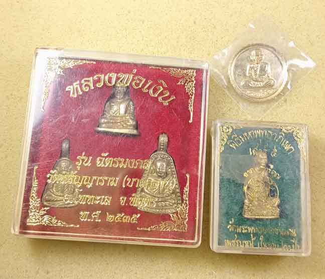 ชุด 3 องค์ หลวงพ่อเงิน รุ่นฉัตรมงคล + เหรียญหลวงพ่อเงิน ขวัญถุง + รูปหล่อหลวงพ่อทบ 20 ปี |