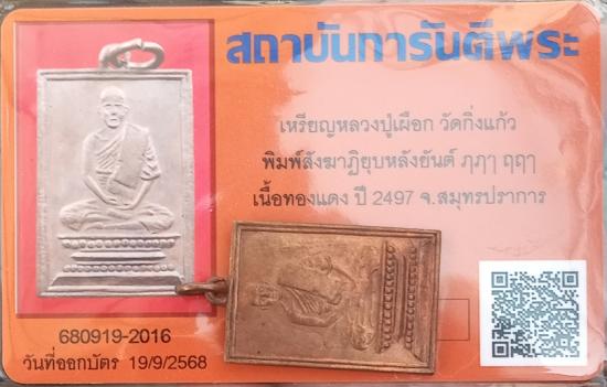 เคาะเดียวแดง++เหรียญหลวงปู่เผือก วัดกิ่งแก้ว ปี2497 พิมพ์สังฆาฏิยุบ นิยม หลังยันต์ครู เนื้อทองแดงผิวไฟ สวยเดิมพร้อมบัตรรับรองครับ