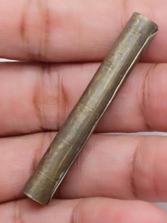 เคาะแรกแดง ตะกรุดมีรอยจารคำว่า คงกพัน กับมีรอยจารอักขระ ไม่ทราบที่ ไม่ทราบเกจิ |