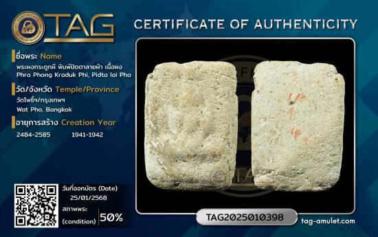 ชื่อพระเครื่อง พระผงกระดูกผีวัดโพธิ์พิมพ์ปิดตาลายผ้าพร้อมบัตรรับรองพระแท้อาจารย์โทนบางแค