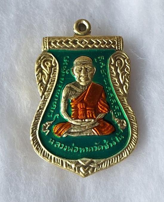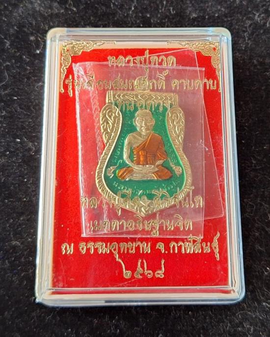 วัดใจ หลวงปู่ทวด หลวงปู่ศิลา เมตตาอธิษฐานจิต รุ่นเลื่อนสมณศักดิ์ เหนือดวง เนื้อทองทิพย์ ลงยา No.32 |