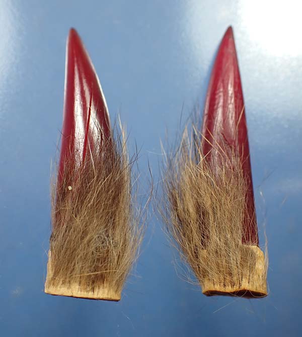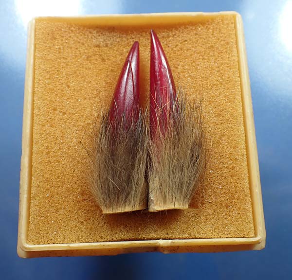 เครื่องรางที่หายากที่สุดในโลกใบนี้ เขากระจง 2 ชิ้น ของแท้ เก่าเก็บ สูงประมาณ 4.5 เซนติเมตร กว้าง 0.8 เซนติเมตร |