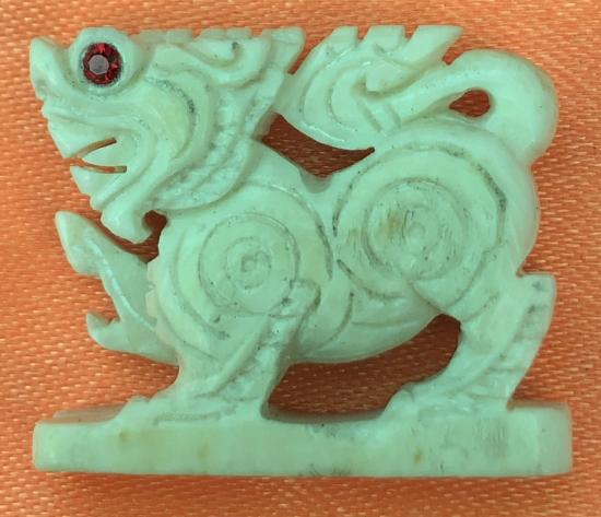สิงห์งาแกะฝังตาพลอยแดง ขนาดความกว้าง2.5ซม.ความสูง 2.0ซม |
