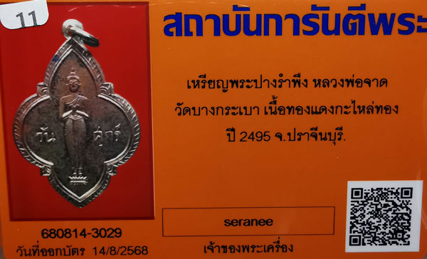 (วันศุกร์)เหรียญพระปางรำพึง หลวงพ่อจาด วัดบางกระเบา เนื้อทองแดงกะไหล่ทอง ห่วงเดิม ปี2495 จ.ปราจีนบุรี + บัตรG-pra สภาพเดิมค่ะ |