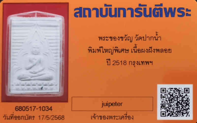 พระของขวัญ วัดปากน้ำ พิมพ์ใหญ่พิเศษ เนื้อผงฝังพลอย ปี 2518 พร้อมบัตรการันตรีพระ