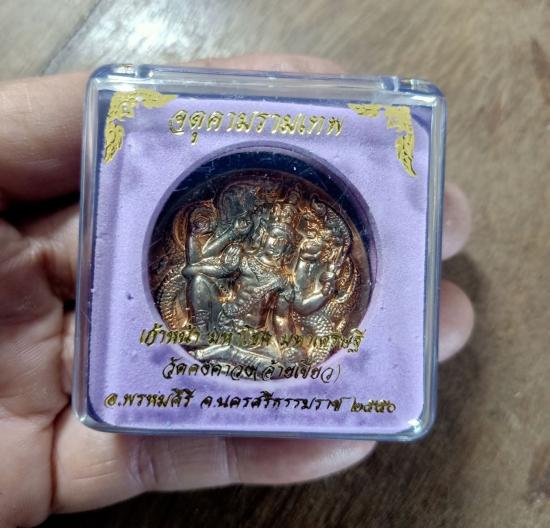 เหรียญองค์พ่อจตุคามรามเทพ "รุ่นก้าวหน้า มหาโชค มห าเศรษฐี" วัดคงคาวง (วัดอ้ายเขียว) อ.พรหมคีรี จ.นครศรีธรรมราช ปี 2550 เนื้อนวะพลายเงินวิ่งสวย มีโค้ตและหมายเลขกำกับ |