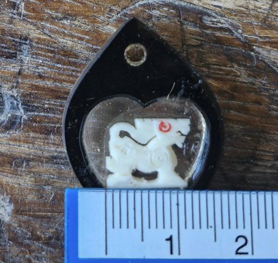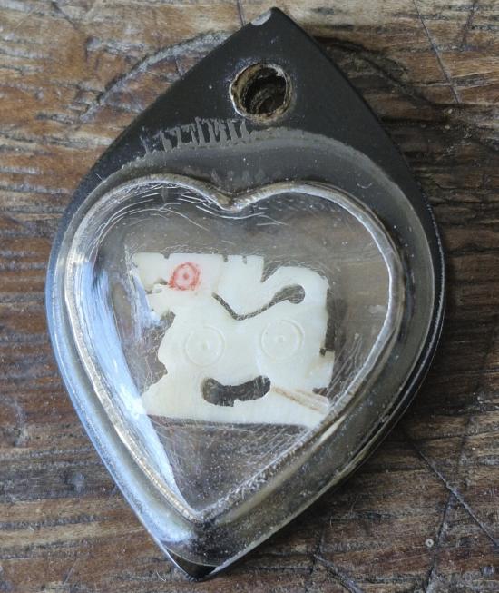 สิงห์สาริกาปากห้าแฉกขวัญกลมงาแกะ ขนาด 1.2 เซน หลวงพ่อหอม วัดชากหมาก เลี่ยมเก่า