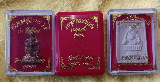 พระผงพระพุทธอานัณยโธ (หลวงพ่อปลดหนี้)+พระผงดวงดี เนื้อไม้เทพทาโร และท้าวเวสสุวรรณ รุ่นซื้อที่ดิน หลวงพ่อแม้น วัดหน้าต่างนอก (เคาะเดียวครับ) |