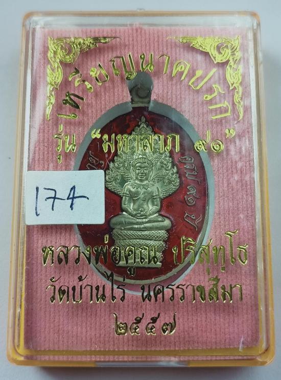 เหรียญนาคปรก หลวงพ่อคูณ มหาลาภ91 เนื้ออาปาก้าลงยาสีแดง เบอร์ 174 พร้อมกล่องครับ
