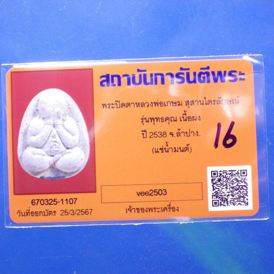 พระปิดตาแช่น้ำมนต์ หลวงพ่อเกษม รุ่นพุทธคุณ ฝังตะกรุดสังฆวานร ปี 2538. ..16.. (68.6.24 |