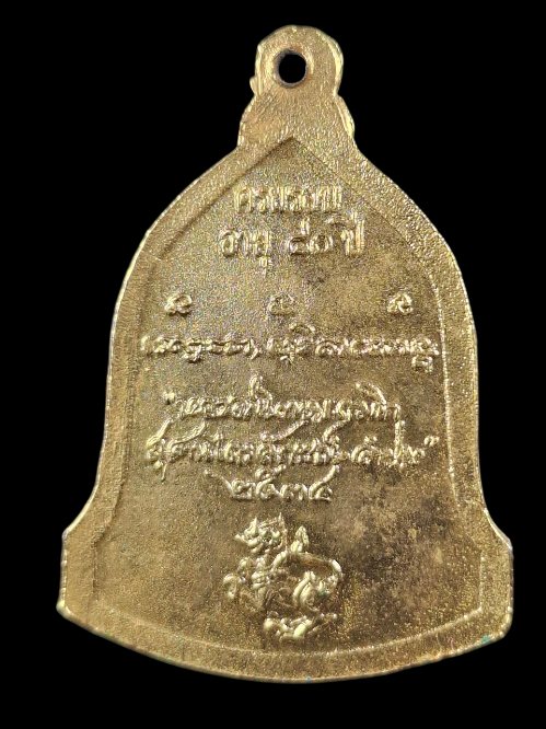 เหรียญระฆังหลังสิงห์ ที่ระลึกครบรอบ 80 ปี หลวงพ่อเกษม เขมโก เนื้อกะไหล่ทอง ปี 2534
