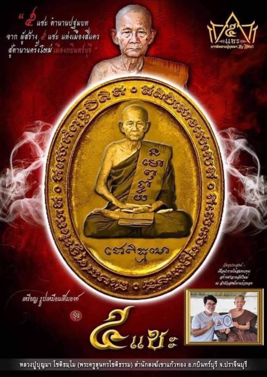 เหรียญหลักยอดนิยมของหลวงปู่ เหรียญ5แชะ รุ่นแรก หลวงปู่บุญมา สำนักสงฆ์เขาแก้วทอง จ.ปราจีนบุรี เนื้อมหาชนวนหน้ากากเงิน(แถมยกลัง) สร้างน้อย 414 เหรียญเท่านั้น สวยมาก หายาก น่าบูชายิ่งนัก ปัจจุบันวัตถุมงคลหลวงปู่บุญมาขยับราคาขึ้นทุกรุ่น พุทธคุณประสบการณ์ของพระเครื่องของท่านยิ่งมากและไม่ธรรมดาโดยเฉพาะเรื่องมหาอุดคงกระพันชาตรี จนถึงประสบการณ์ที่ผู้บูชานับถือได้ประสบพบมากับตัวเองแล้วนั้นด้วย วัตถุมงคลหลวงปู่บุญมามีประสบการณ์มากมาย ห้ามพลาดด้วยประการทั้งปวงแล้วครับ รับประกันชั้นหนึ่งครับ |