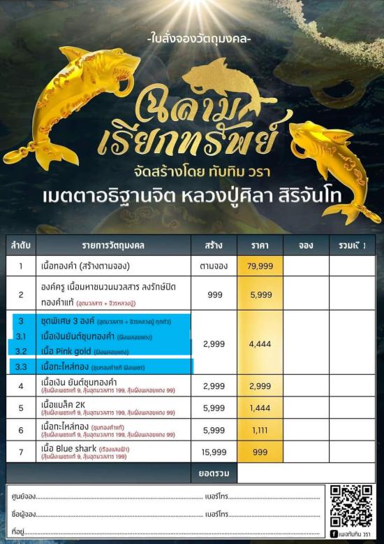 ชุดพิเศษ ฉลามเรียกทรัพย์ หลวงปู่มหาศิลา หลวงปู่ศิลา สิริจันโท ธรรมอุทยาน วัดพระธาตุหมื่นหิน จ.กาฬสินธุ์ ชุดพิเศษ 3 องค์ ซีนเดิมลุ้นเลขสวย ราคาคาจอง 4444 บาท