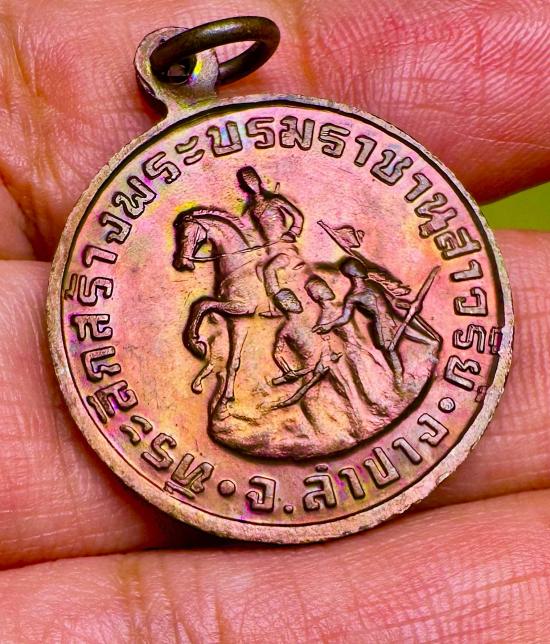 เหรียญสมเด็จพระนเรศวรมหาราช ที่ระลึกเปิดพระบรมราชาอนุสาวรีย์ ปี 2534 ลำปาง (หลวงพ่อเกษมเขมโก สุสานไตรลักษณ์ ปลุกเสก) |