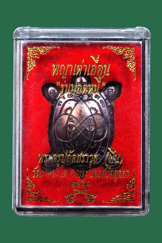 พญาเต่าเลื่อน รุ่นปลดหนี้ พระครูปืน วัดลาดชะโด ปี 2561 เนื้อทองแดง เลข 137