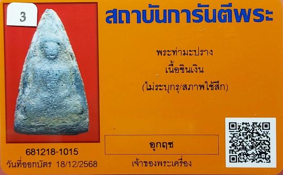 วัดใจ พระท่ามะปราง เนื้อชินเงิน พร้อมบัตรรับรองจากจีพระ |