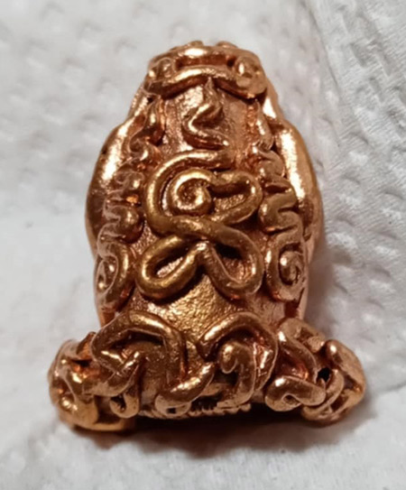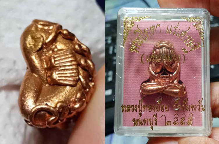 พระปิดตา แร่โคตรเศรษฐี ซึ่งผสมแร่บางม่วง และทองคำ เงิน เนื้อจึงเป็นสีทองดอกบวบ หายากมาก เพราะแร่มีจำนวนน้อย สร้างได้เท่าที่แร่มีอยู่เท่านั้น |