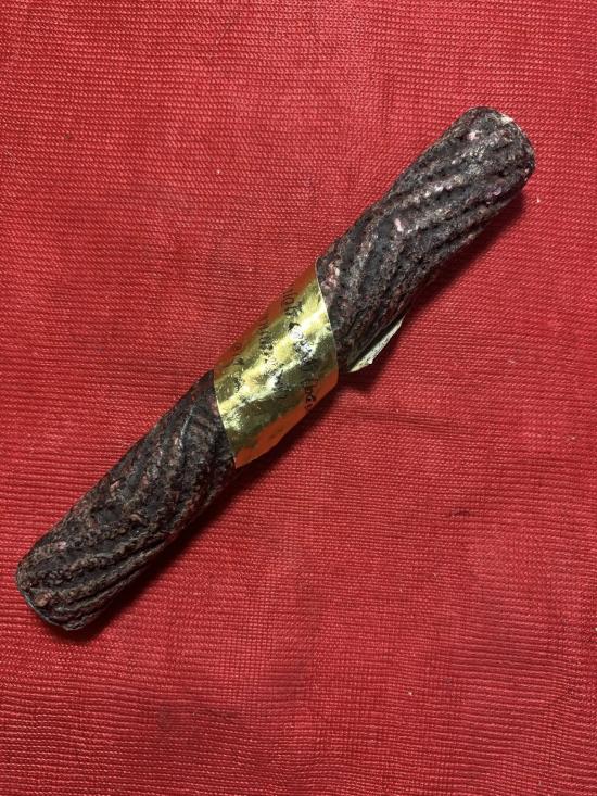 ตะกรุดโทน หลวงปู่แผ้ว ปวโร วัดรางมัน นครปฐม ปี 2554 ยาว 4 นิ้ว มีตอกโค้ตที่ด้านปลายตะกรุด เชิญเคาะครับ |