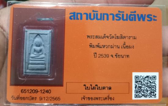 พระสมเด็จแหวกม่าน ย้อนยุค ปี 39 หลวงพ่อกวย วัดโฆสิตาราม หลังมีตราปั๊ม ไม่มีกล่อง พร้อมบัตร G คะ