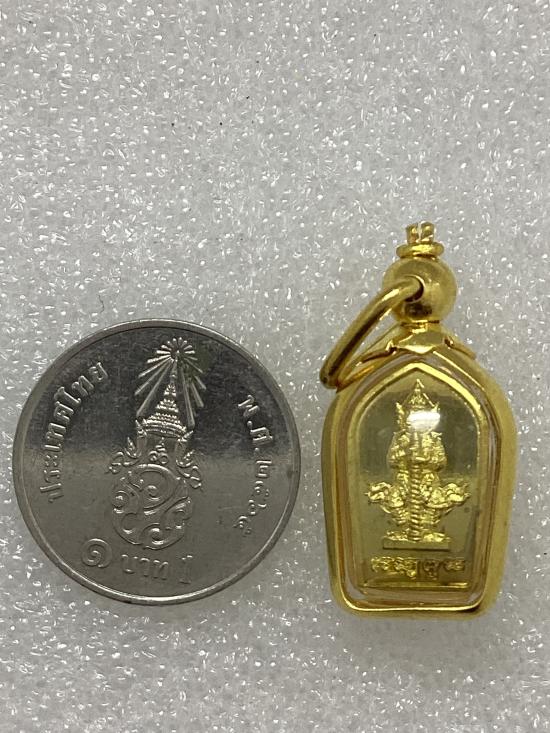 เคาะเดียวแดง 100 เหรียญปรกใบมะขาม ท้าวเวสสุวรรณ พันล้านมหาเวทย์ วัดสันมะเหม้า เชียงราย สูง 1.5 ซ.ม. |