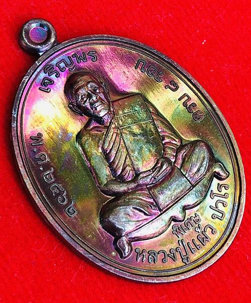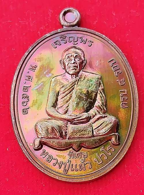 เหรียญเจริญพรบน เนื้อทองแดง หลวงปู่แผ้ว วัดรางหมัน สภาพสวยงามผิวรุ้ง มาพร้อมกล่องเดิม