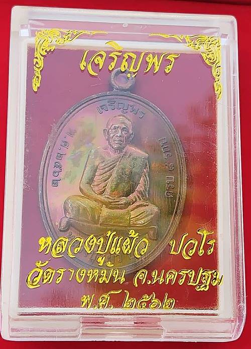 เหรียญเจริญพรบน เนื้อทองแดง หลวงปู่แผ้ว วัดรางหมัน พร้อมกล่องเดิม