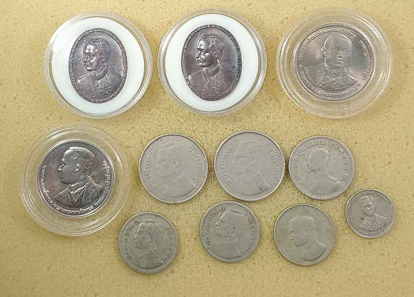 เหรียญร.5 2 เหรียญ + เหรียญร.6 2 เหรียญ + เหรียญร.9 7 เหรียญ