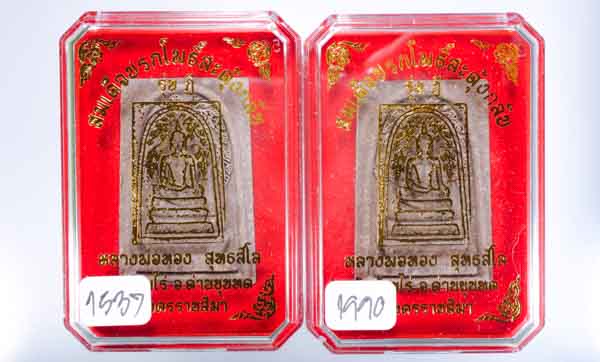 *2องค์ สมเด็จปรกโพธิ์สะดุ้งกลับ รุ่นฎี หลวงพ่อทอง วัดบ้านไร่ แผ่นหมายเลขเงิน ปลุกเศก 19 วัน เคาะเดียวแดง* |